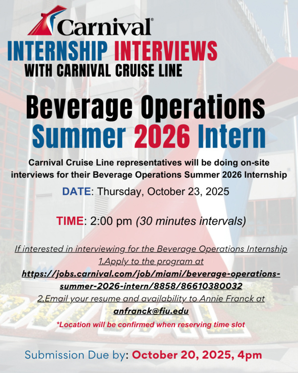 The Chaplin School of Hospitality & Tourism Management at Florida International University (FIU) is ranked 4th in the U.S. and 31st in the world among the best public universities for hospitality & tourism management. We are the top hospitality program in Miami and the only dedicated hospitality program located in the premier global destination of Miami, Florida. Our students have access to unforgettable experiences thanks to our location as a vacation, resort and event destination.